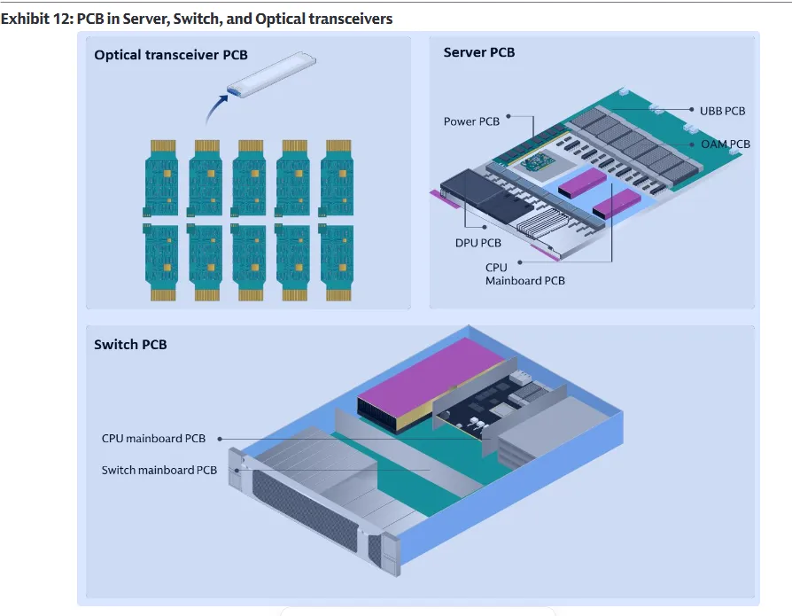 2.PCB/CCL 在人工智能服务器中的使用量增加,因 PCB 更便于人工智能服务器制造,逐步替代铜缆;