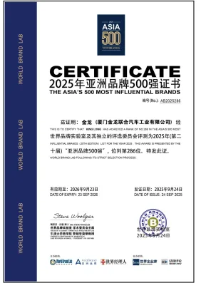 从荣获日内瓦国际发明展多项奖项,到累计拥有1451项授权知识产权,金龙客车以持续创新构筑起坚实的技术“护城河”;通过持续推进关键技术落地与规模化应用,L4级自动驾驶巴士累计安全行驶超320万公里,金龙客车不断夯实“中国智造”的技术底座。这一年,金龙客车发展成果加速显现,品牌价值持续攀升并突破千亿,连续两年入选亚洲品牌500强,成为中国客车行业唯一入选的品牌。