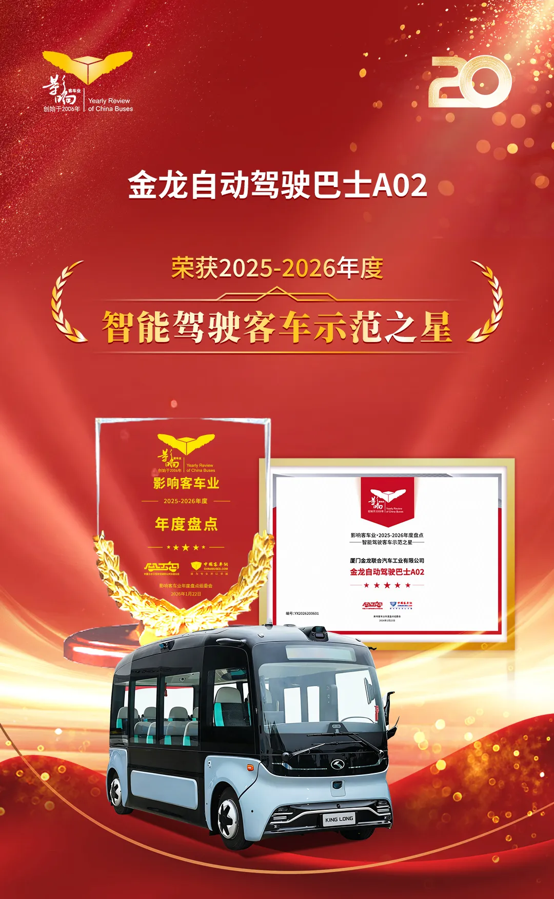 此次斩获行业三项大奖,充分彰显了金龙客车在国内商用车领域持续深耕所形成的技术积累与综合实力,也体现了行业对金龙客车创新成果与实践价值的高度认可。站在“十五五”即将开篇的新起点,金龙客车将坚定“建设美好出行社区”的信念,向新而行,向海图强,为建设交通强国、共建美好出行社区贡献不可替代的“金龙力量”。