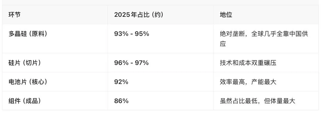 2025年中国光伏组件产量预计在570GW左右,占全球比重的86%,这不仅仅是“领先”所能概述的,是一种全方位,全产业链的绝对主导。如果把光伏制造比作做面包,多晶硅是面粉,硅片是面团(成型),电池片是烤熟的面包(具备了能量/价值),组件是包装好的面包礼盒(最终商品)。我们从投资的角度,深度挖掘一下各个环节的核心公司。一、上游:硅料+硅片(原料和基材核心)