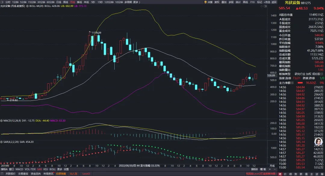 光板板块经过周五的大涨,日线和周线走势符合三指标多头趋势,可关注。月线尺度:仍需MACD上破零轴,进一步确认超级周期的反转。(以上仅代表个人观点,仅供参考,股市有风险,投资需谨慎)