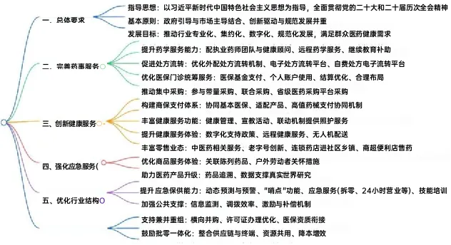 >商务部等9部门关于促进药品零售行业高质量发展的意见思维导图