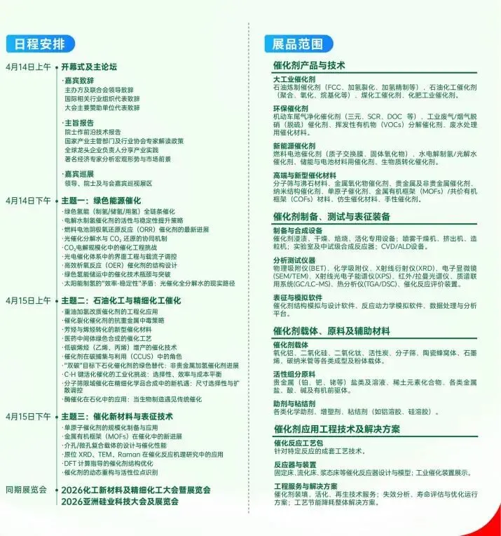 值得一提的是,ACMIE2026期间,我院将同期举办2026亚洲硅业科技大会及展览会、2026全国催化及催化剂博览会,三大展览会将联合展示我国及世界范围内的行业新理念、新技术、新产品、新应用等。让大家在观展之余,了解行业的整体状况及发展趋势。