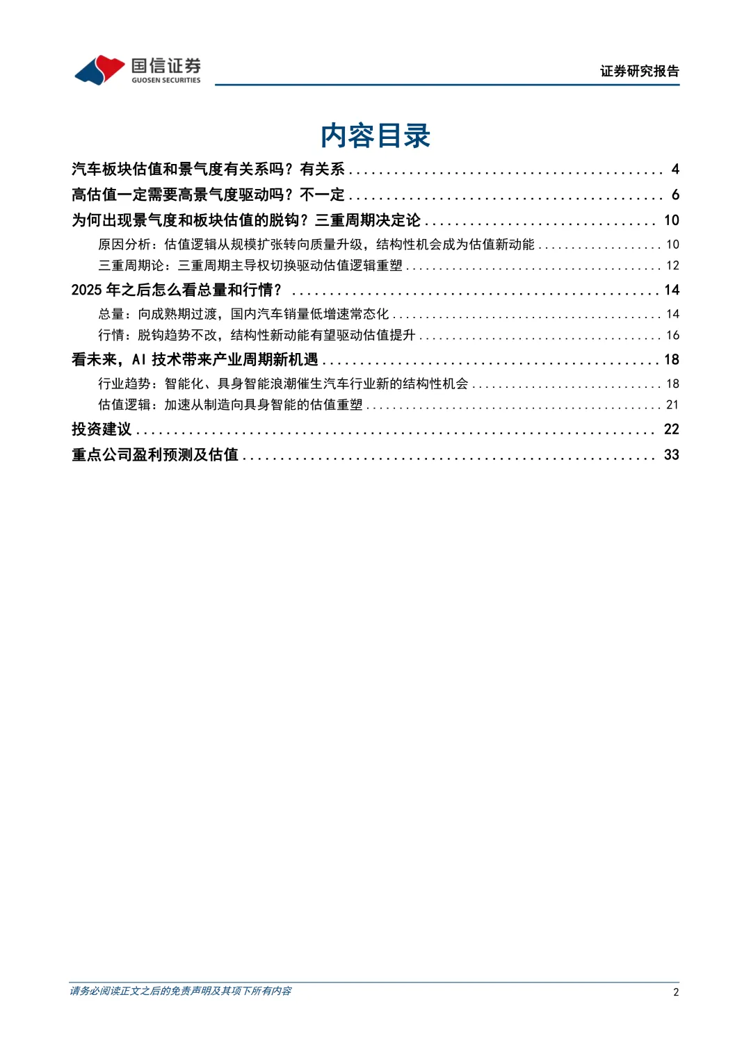 2025年之后怎么看总量和行情?总量低增速常态化,关注AI技术带来产业周期新机遇。总量方面,我国汽车行业总量已进入常态化低增速阶段,预计未来汽车总体销量持平,新能源乘用车销量增速预计有所放缓。结构性行情来自于出海/智能车/机器人,2026年个股估值分化加剧。