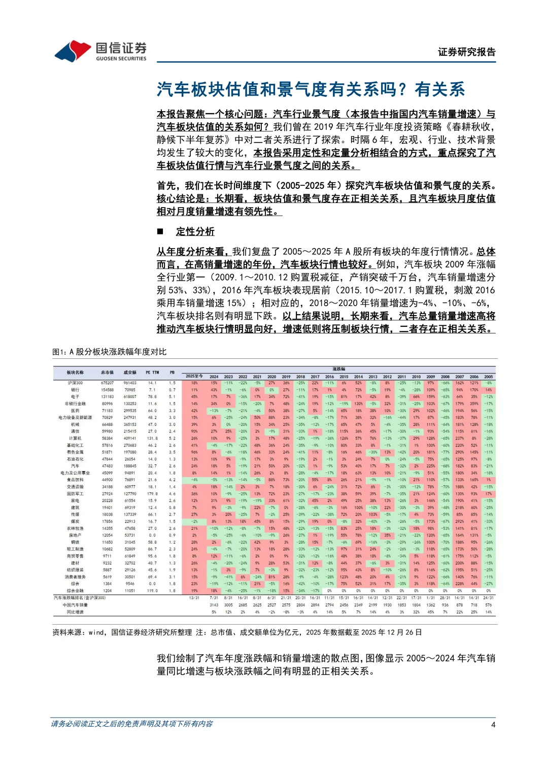 本报告起始于一个核心问题:汽车行业景气度(总量增速)与汽车板块估值的关系如何?当前汽车行业既面临总量红利逐步消退的压力,又迎来AI大模型快速迭代的变革机遇,行业景气度与板块估值的关联逻辑更趋复杂。为此,我们采用定性和定量分析相结合的方式,系统性探究汽车行业景气度与汽车板块估值的关系,提供低增速时代下汽车行业的投资策略和分析框架。