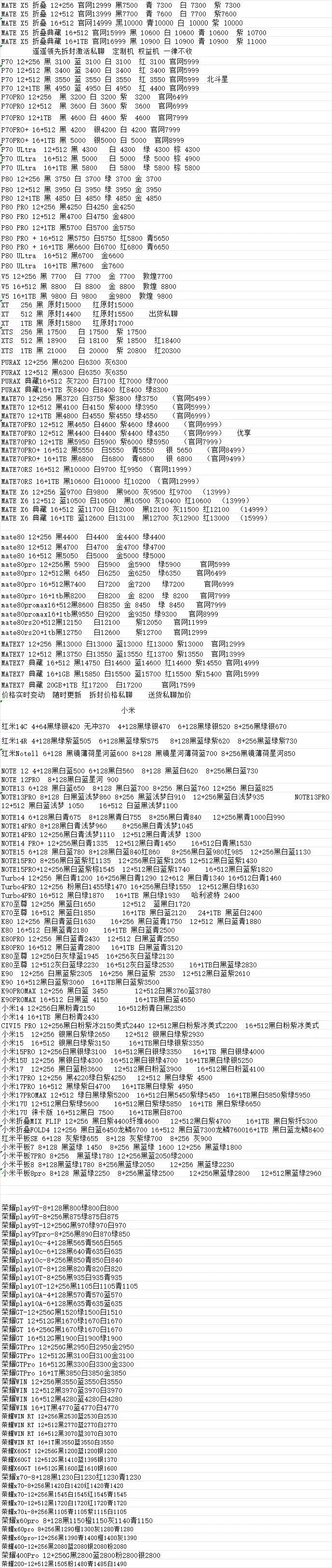 | 华为/荣耀/红米/小米参考报价 |