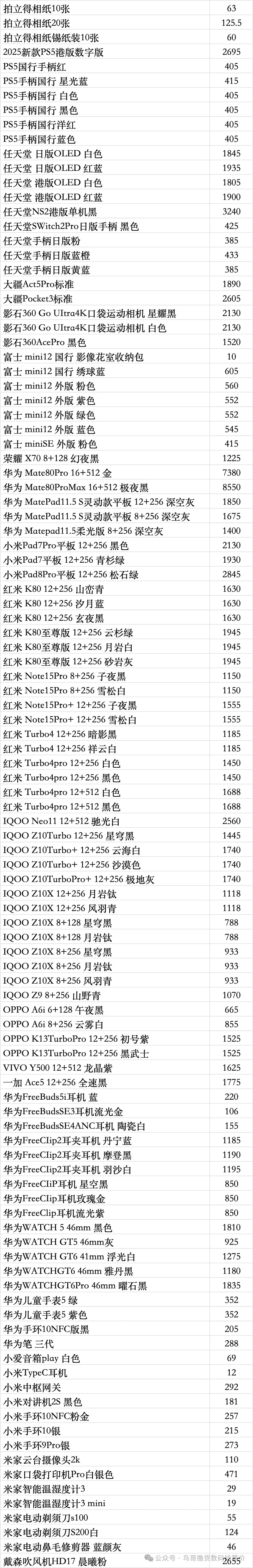 | 鸟哥收货华为/oppo/vivo系列结算价(前一天的结算价) |