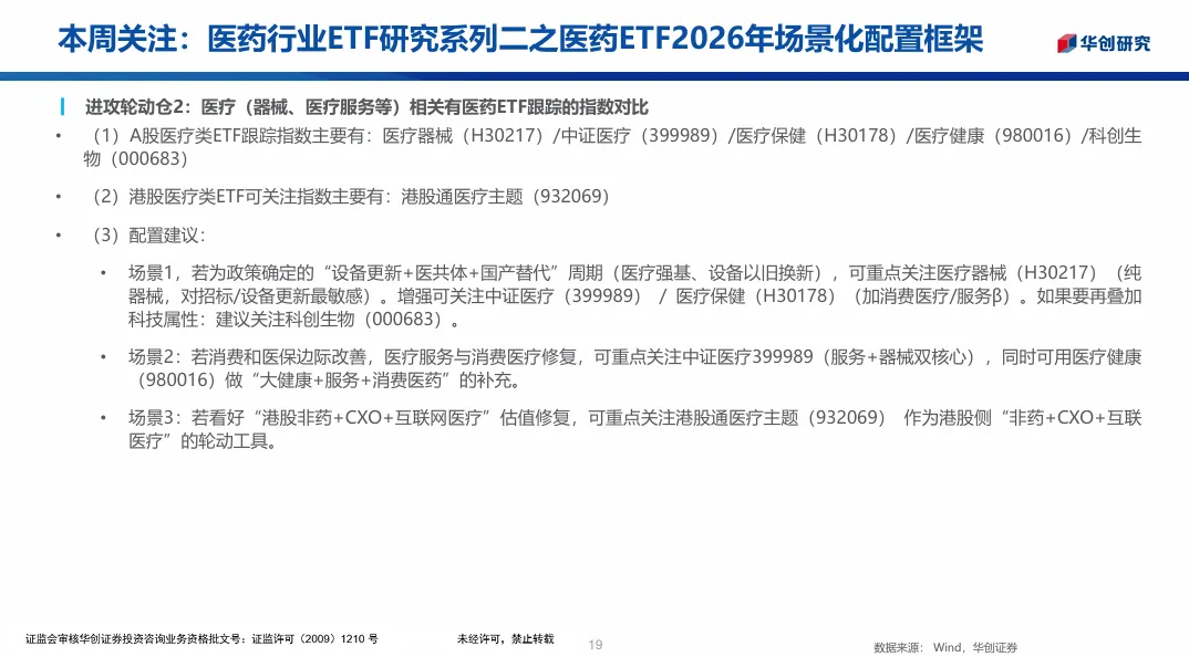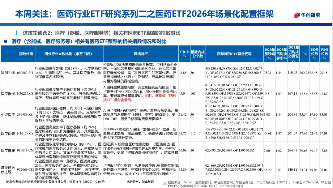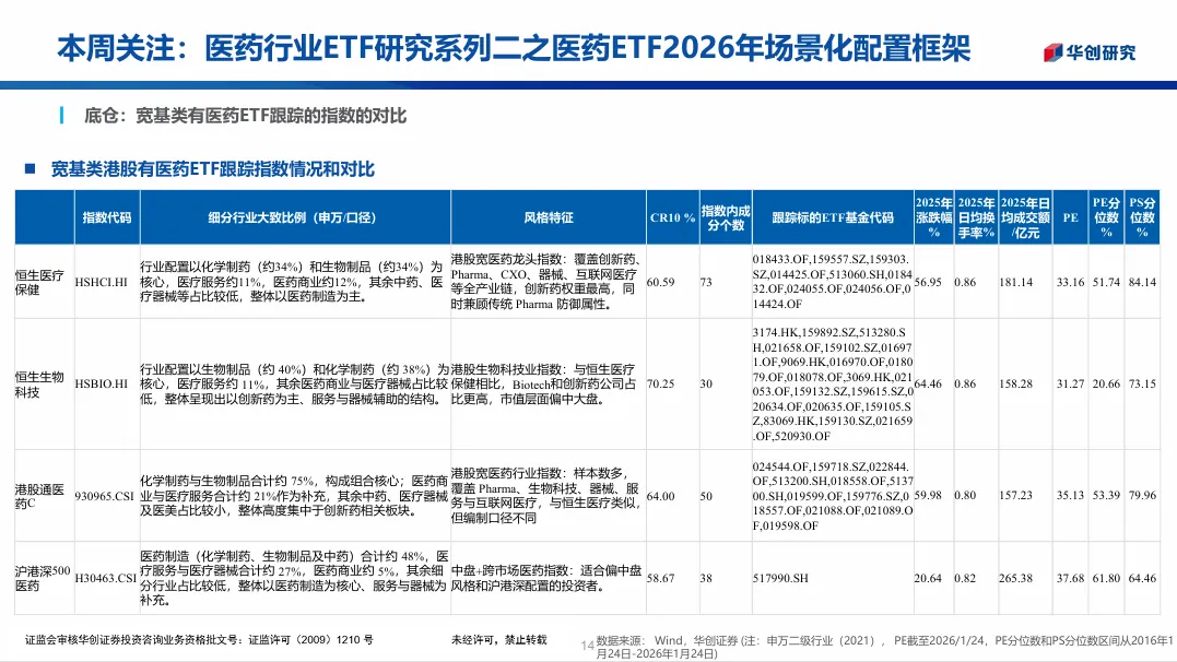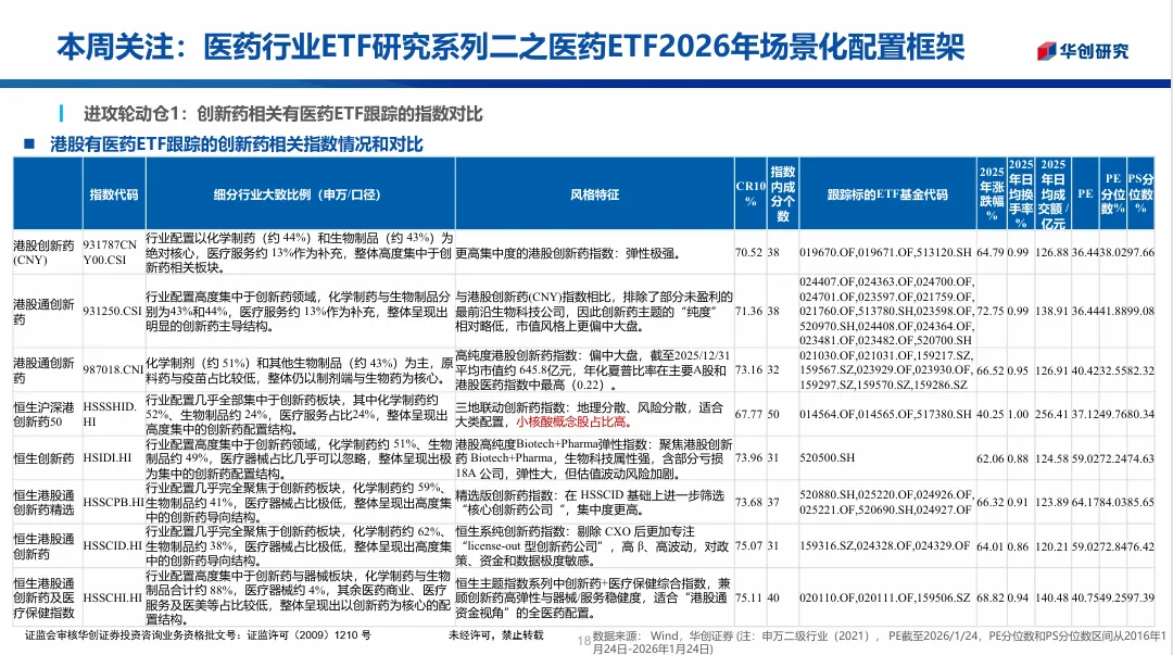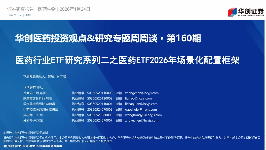 华创医药周观点:医药行业ETF研究系列二之医药ETF2026年场景化配置框架 2026/01/25