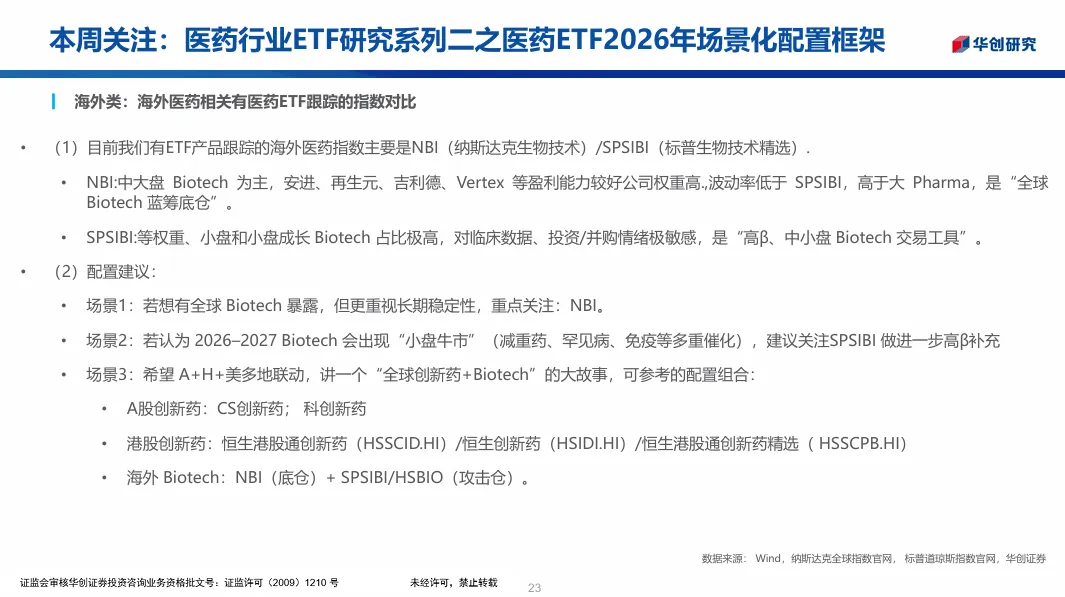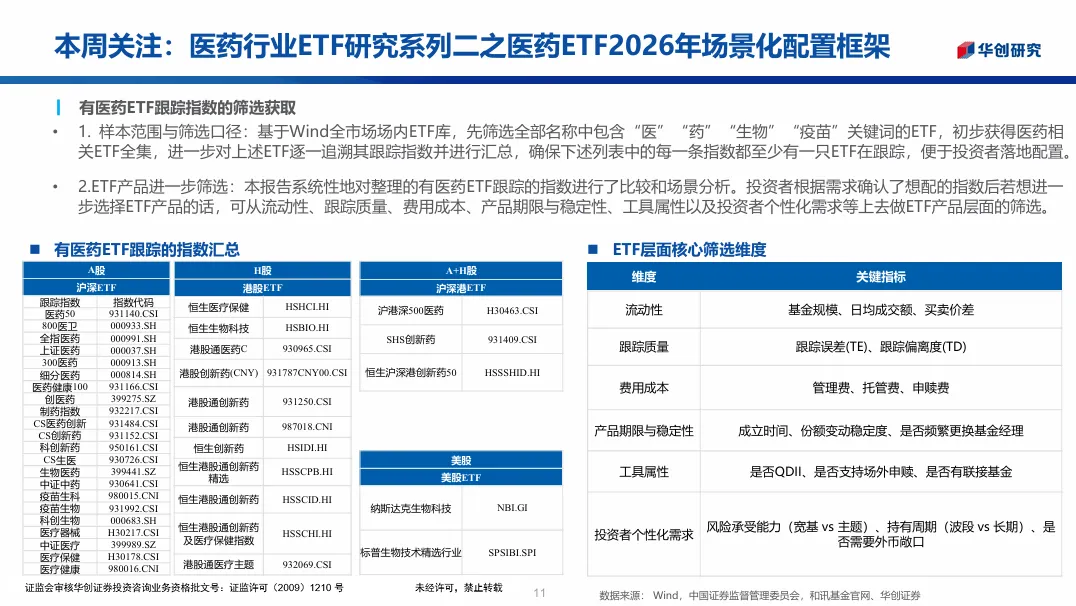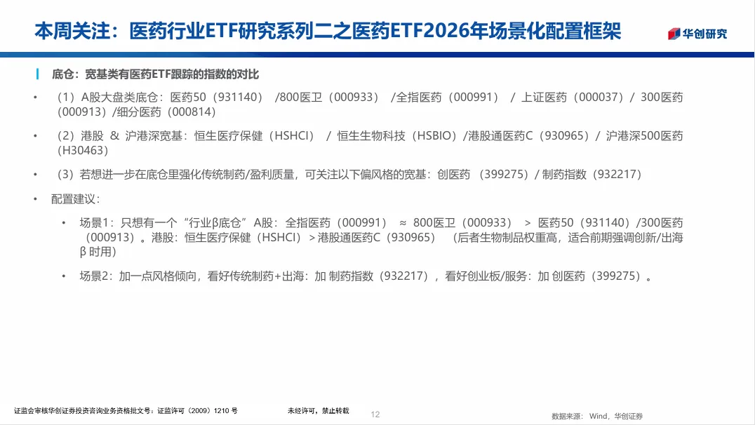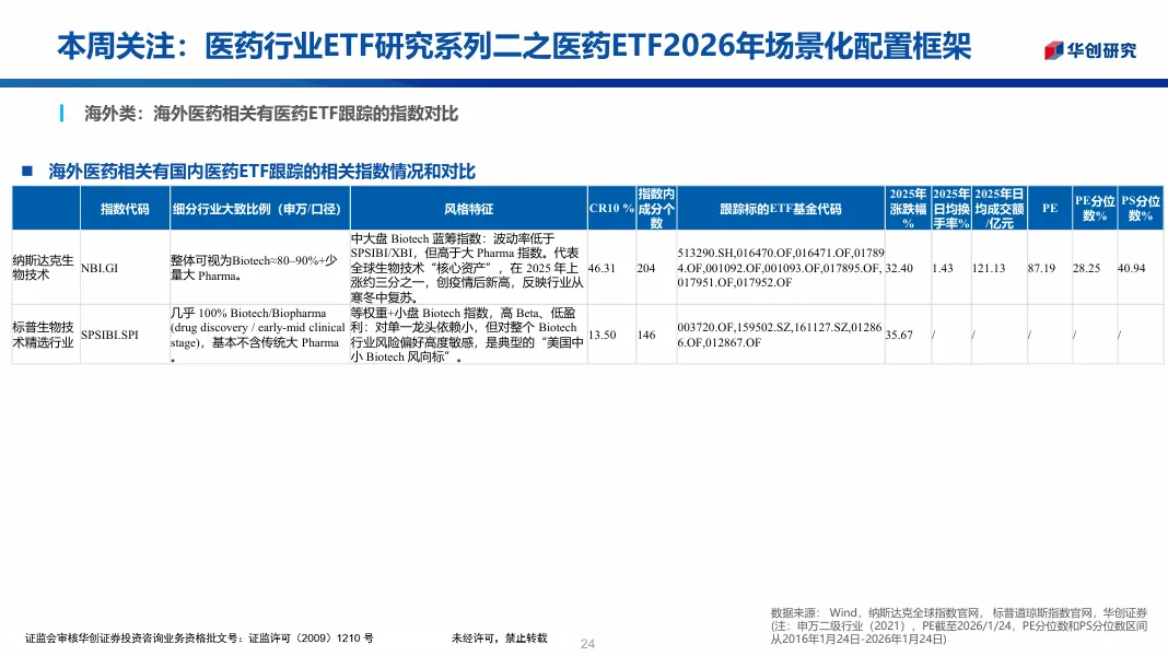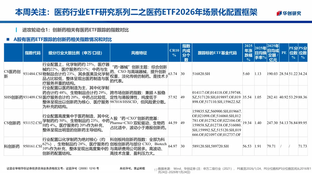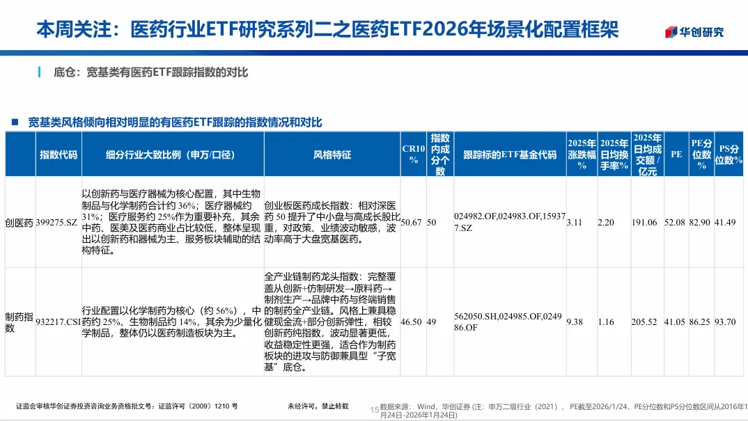 华创医药周观点:医药行业ETF研究系列二之医药ETF2026年场景化配置框架 2026/01/25