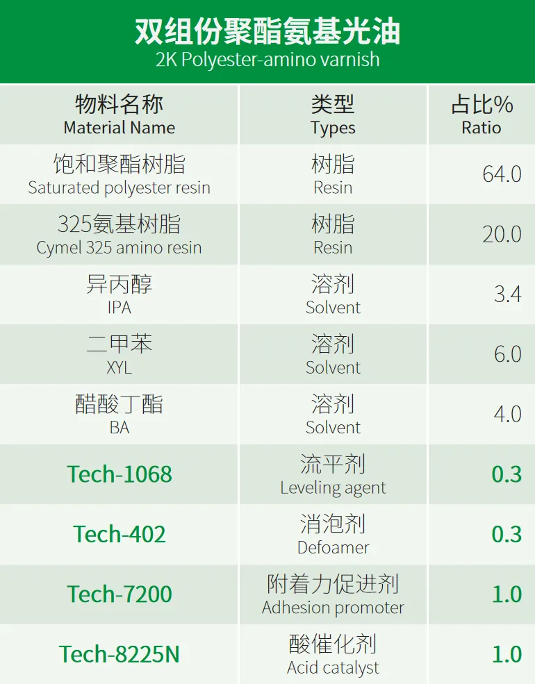 本次提供卷材涂料领域的系列解决方案,核心聚焦于双组份聚酯氨基体系的七个痛点,针对光油、哑光油及特定颜色色浆提供了详细的配方和性能实测数据,展现优质、稳定的涂装效果。