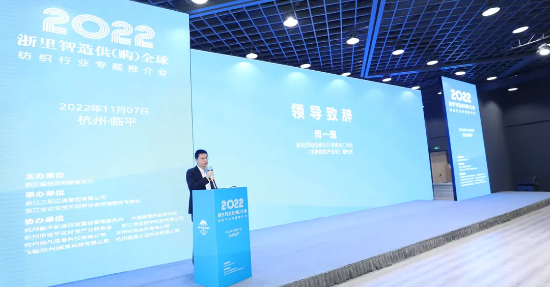 省经信厅消费品工业处副处长周一珉致辞中表示,纺织产业是我省传统优势产业和重要民生产业。浙江省委、省政府高度重视纺织产业发展,在建设全球先进制造业基地的决策部署中,全力推动纺织产业转型升级、高质量发展。本次“浙里智造供(购)全球”纺织行业专题系列推介活动,旨在整合全链路资源,政企合力帮助纺织服装企业加快转型升级、提质增效;推广“生产+市场”的发展模式,聚焦中小企业,聚焦微型数字化改革,汇聚上下游专业服务机构,形成一批“小快轻准”的系统解决方案和样板企业。