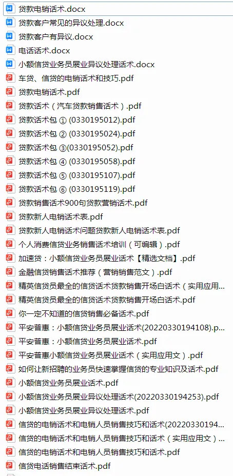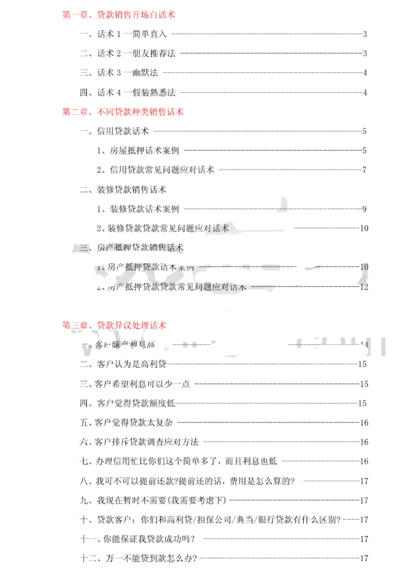 给大家推荐一套《贷款行业销售话术资料包》