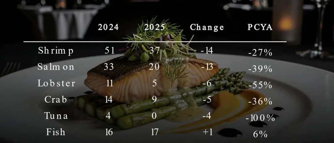 🔹促销乏力威胁热度,美餐饮海鲜品类面临消费者注意力流失危机,海鲜促销锐减,餐饮运营商如何在涨价潮中留住顾客兴趣?