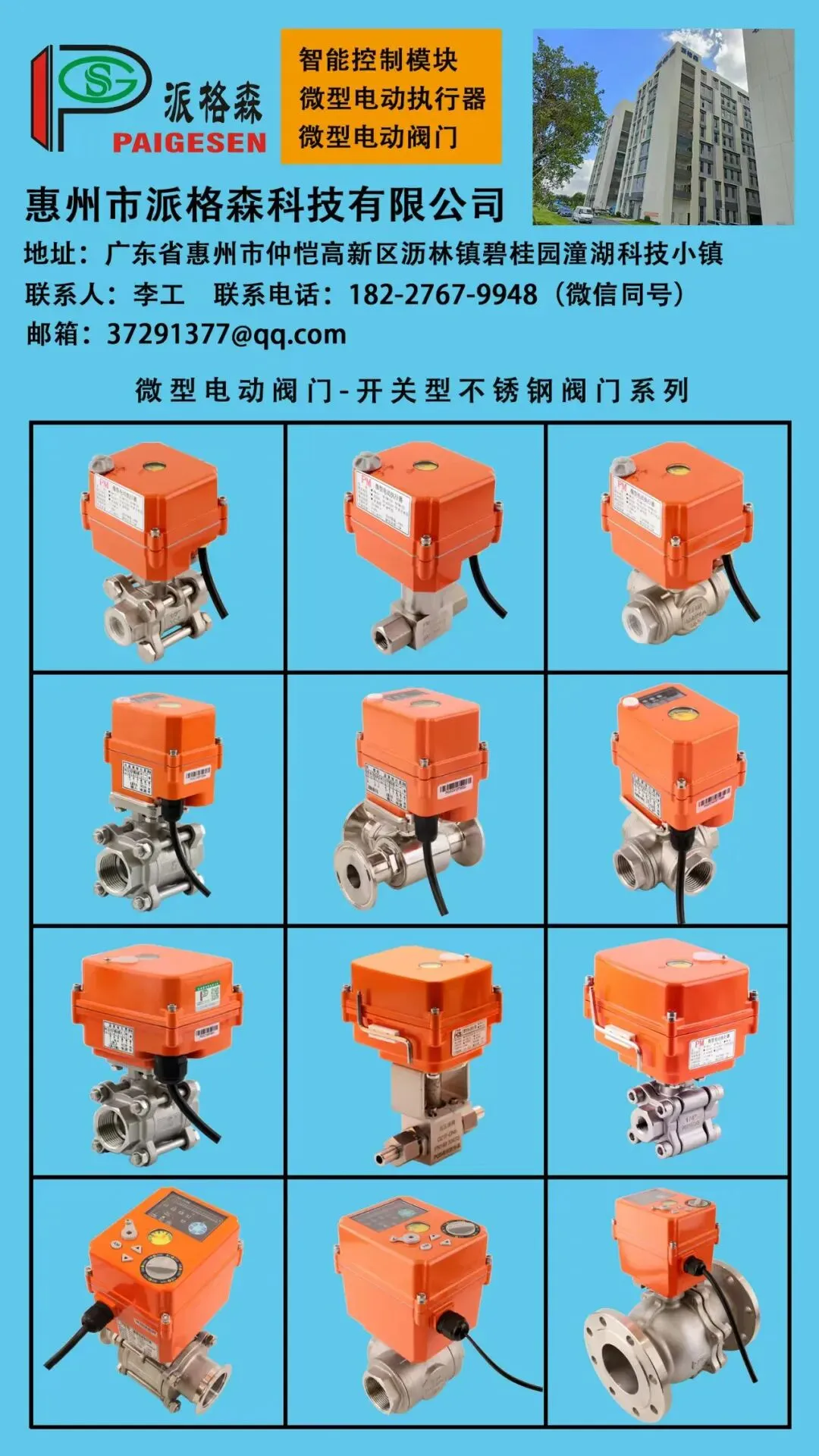 31. 惠州市派格森科技有限公司:地址广东省惠州市惠城区沥林镇碧桂园潼湖科技小镇25栋,电话18227679948;主营微型电动执行器/阀门、智能控制模块、阀门定位器