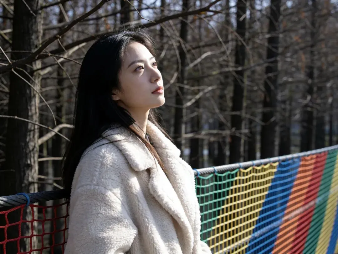 十二月的风卷着水杉林最后一点枯叶,在枝桠间发出细碎的轻响。苏野把脸往米白色的毛绒领子里又缩了缩,指尖划过彩虹防护网的彩色绳结,凉丝丝的触感让她忍不住打了个颤。