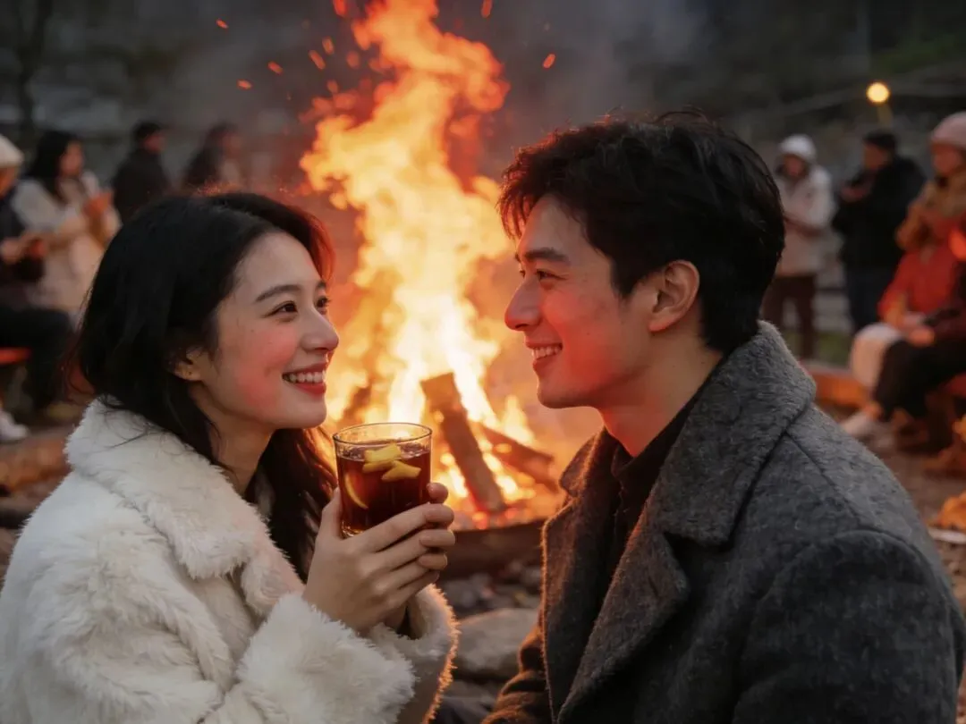篝火在空地上熊熊燃烧,映得每个人的脸颊都暖烘烘的。民宿老板抱着吉他弹唱民谣,周围的游客跟着轻轻哼唱。苏野靠在火堆旁,手里捧着温热的姜茶,看着陆沉舟被火光映亮的眼睛,觉得这三十天的逃离,好像突然有了意义。
