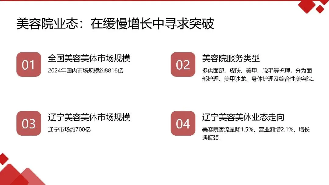 报告中涵盖辽宁省美发、美容、医美、产品经销商等行业的发展情况数据及分析,