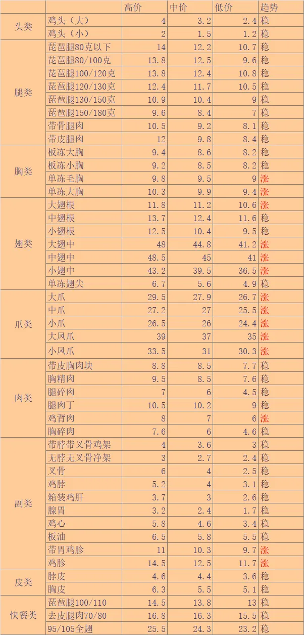 | 微评:今日大肉食毛鸡报价上涨。近期受养殖成功率较低影响,鸡源供给逐步扩大缺口。而屠宰场成本高企,宰杀意愿不足。预计短期继续维持博弈拉锯态势。注:各地毛鸡以实际成交为准,其中活禽交易价格差异大。实际局部根据产品行情、消费、毛鸡出栏现状分析,实际收购价格与报价有一定差距,价格只供参考。 |