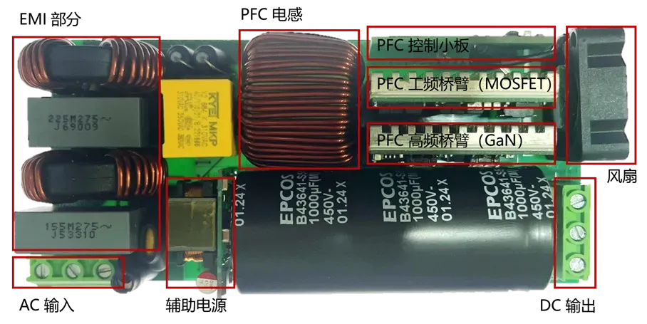 此外,该方案采用了先进的FAN6616高性能PFC控制芯片,具有较小的体积和高效能输出。经过测试,该方案在230V/50Hz输入条件下,成功实现了高达400V/2kW的输出功率,并且功率因数接近0.995,谐波失真低至3%,输出电压纹波控制在6%以内,展现了其卓越的电能质量和可靠性。此外,设备在满载情况下的最高温度也不到75℃,确保了在高负载环境下的稳定运行。这些优点使得云镓的这一APFC方案在高性能电源设计领域具有明显的技术优势和市场潜力。