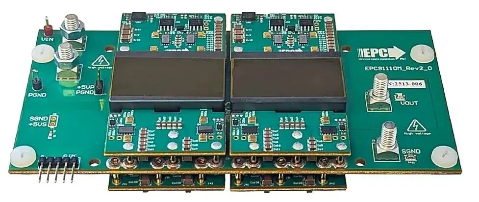 EPC91110KIT评估板采用额定电压150V的eGaN FET,实现400V到50V的高效隔离式DC-DC转换,最大输出功率达到5.5 kW,满足新一代数据中心和AI工厂的电源需求。其独特的ISOP LLC架构将宽电压转换分解为多个模块并联供电,优化了磁件设计并降低了电压应力。板卡尺寸仅为80×70×27mm,模块化设计支持未来高功率系统的扩展。