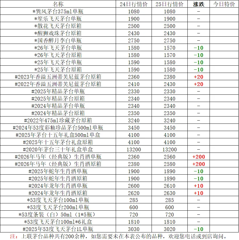 6.因茅台供销两旺,在一日之中偶有浮动属正常情况,本表仅作参考