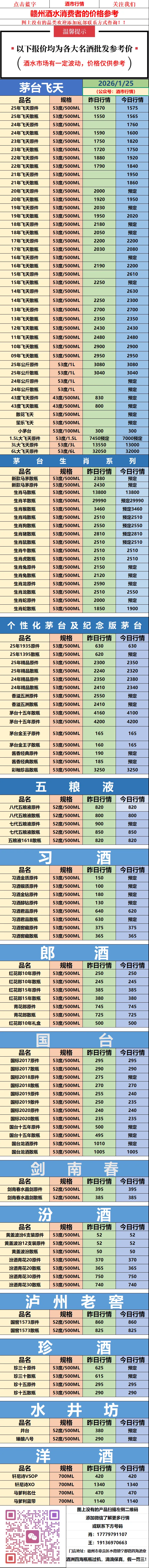 全线上涨,茅台酒1月25日回收行情价