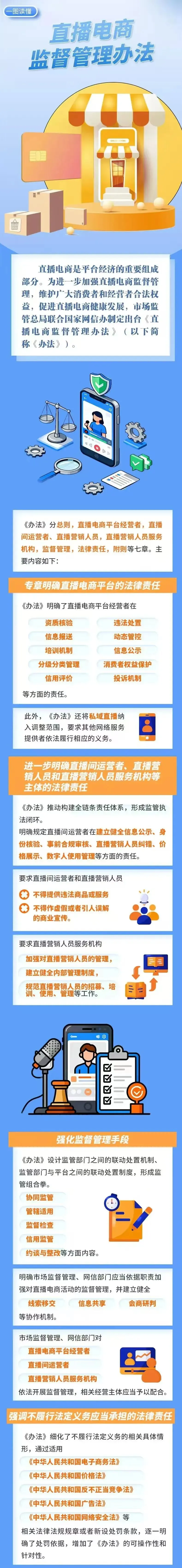 近日,市场监管总局和国家网信办联合发布《直播电商监督管理办法》(以下简称《办法》),加强直播电商监督管理,保护消费者和经营者合法权益,促进直播电商健康发展。