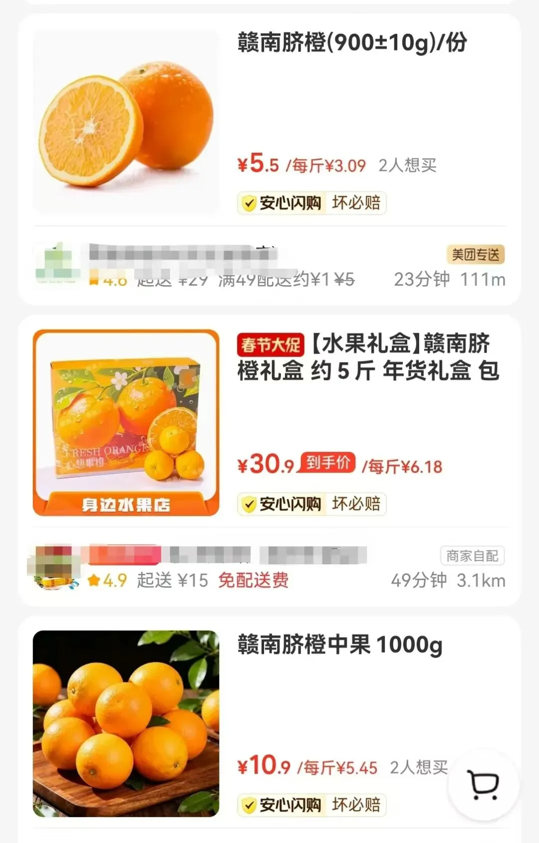 耙耙柑的价格对比去年同时期也几乎“腰斩”。去年丑橘系列刚上市时,每500克售价在9.9至15.8元,如今在外卖平台上,四川春见粑粑柑900克售价为14.4元。脐橙的价格降幅也很明显,去年12月赣南脐橙每500克5.8元,现在外卖平台脐橙每斤约为5元。