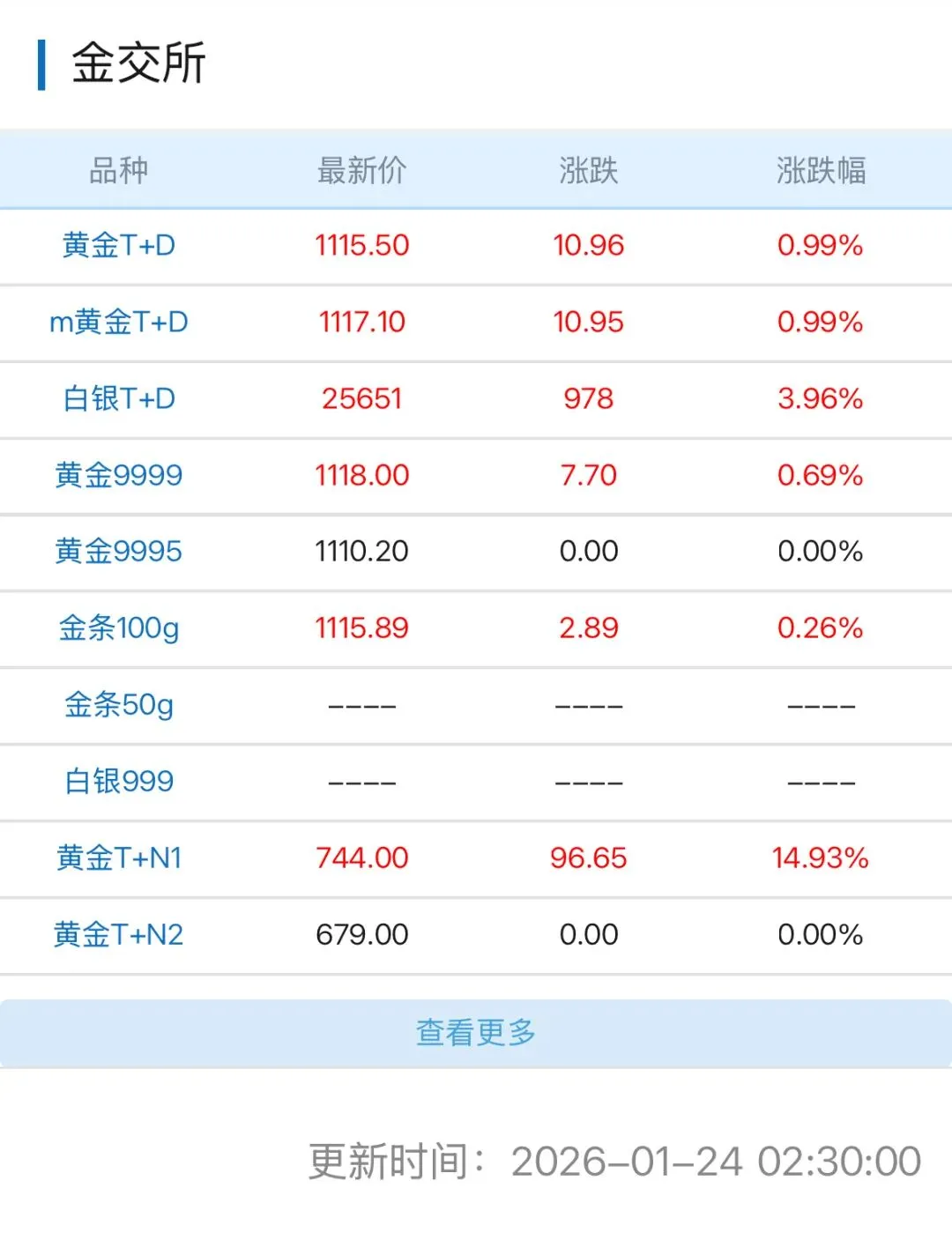 >1月24日、25日黄金价格 今日金价 黄金价格今日走势