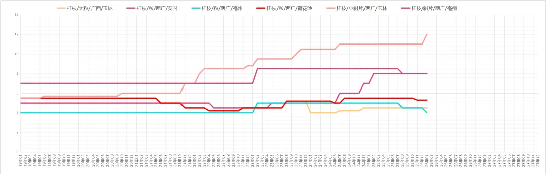 桂枝货源交易顺畅,市场多为玉林专营商经营,近期货源走销顺畅,持货者喊价坚挺,现市场桂枝大粒货多报价在8-10元之间,桂枝尖多报价在13-14元。