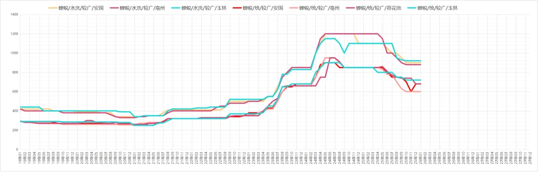 重楼价格持续低位运行,产区产新基本结束,并受新陈货叠加,目前供应充足,且行情处于低位运行,现云南大统货多要价在55-60元之间不等,药厂货报价在35元以上40元以下。