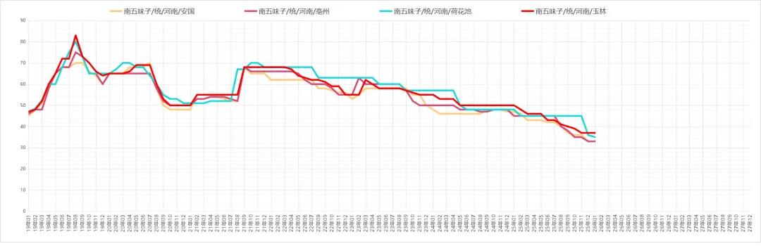 南五味子尚有库存待售,近期有商寻货,货源走销一般,价格无明显波动,现统货价格在35-36元之间。