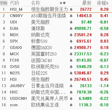 1、从周五隔夜美股表现来看,美股小幅度震荡,对标A股的A50期指连续和恒生指数期货都是上涨的。预计周一大概率是高开的走势。