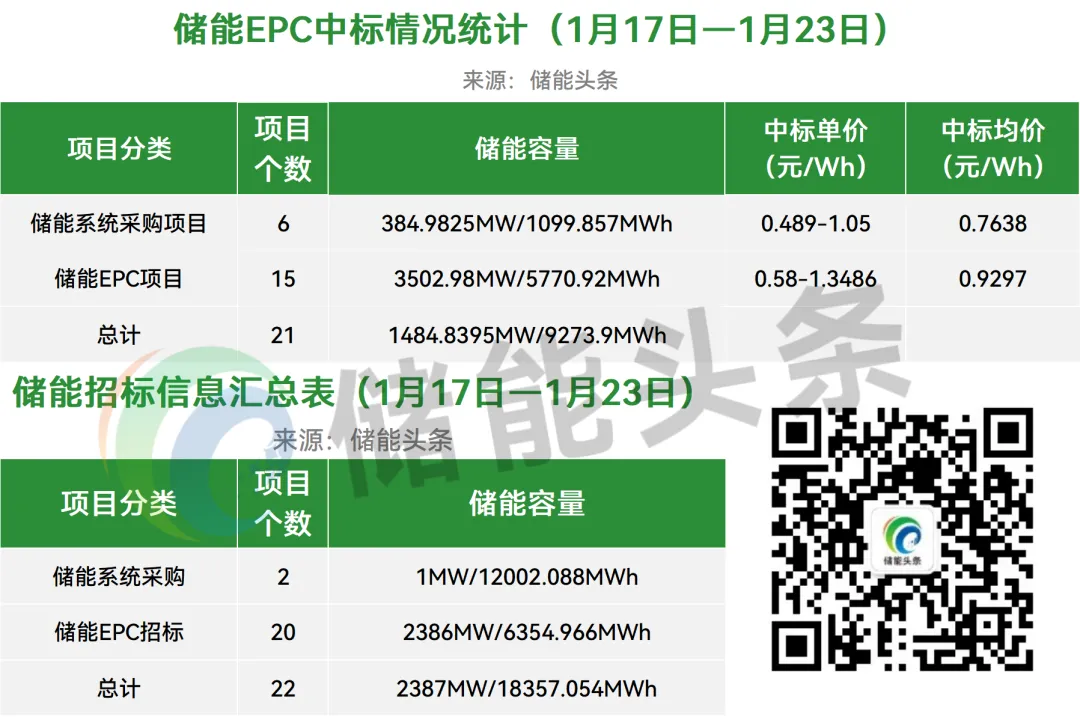 中国能建、启赫新能源、中国电建、金义能源、枣庄市煤炭输电线路管理站等公布6个储能系统采购中标项目。