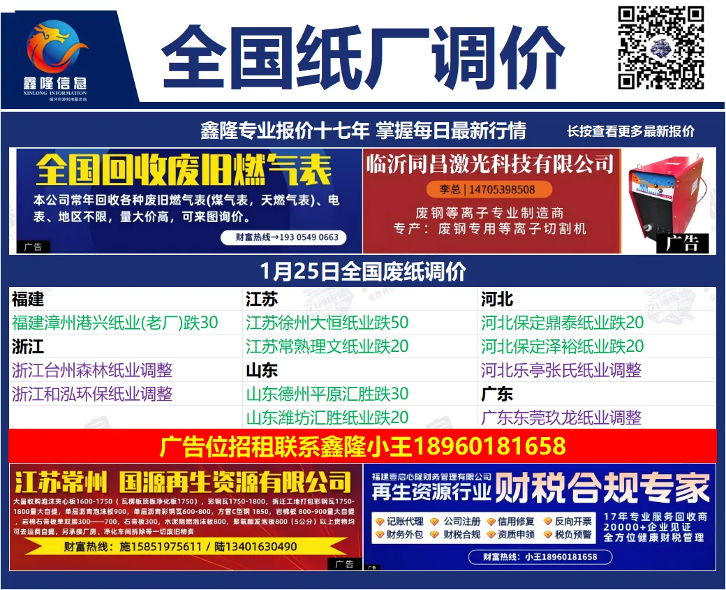 最新废纸调价汇总图已备好!完整调价下滑就能查看,回收老板别错过~⬇⬇⬇⬇精彩在下面