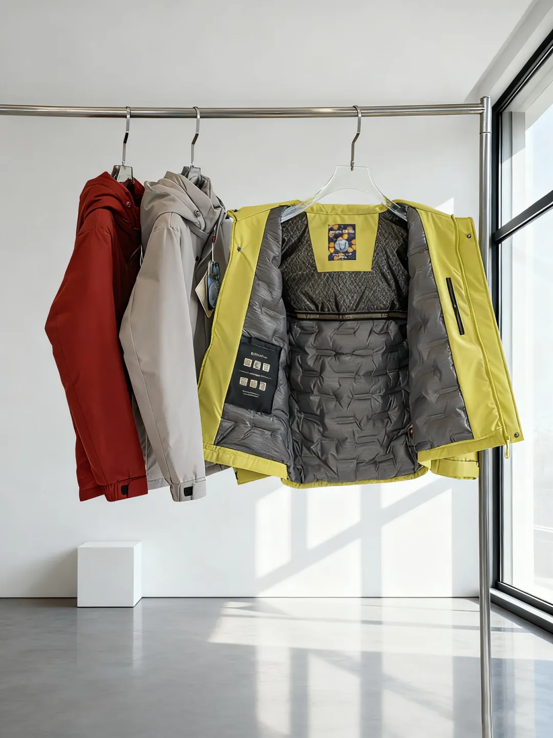 贴合头身,阻挡冷风倒灌;拆卸帽子,上身更时尚!