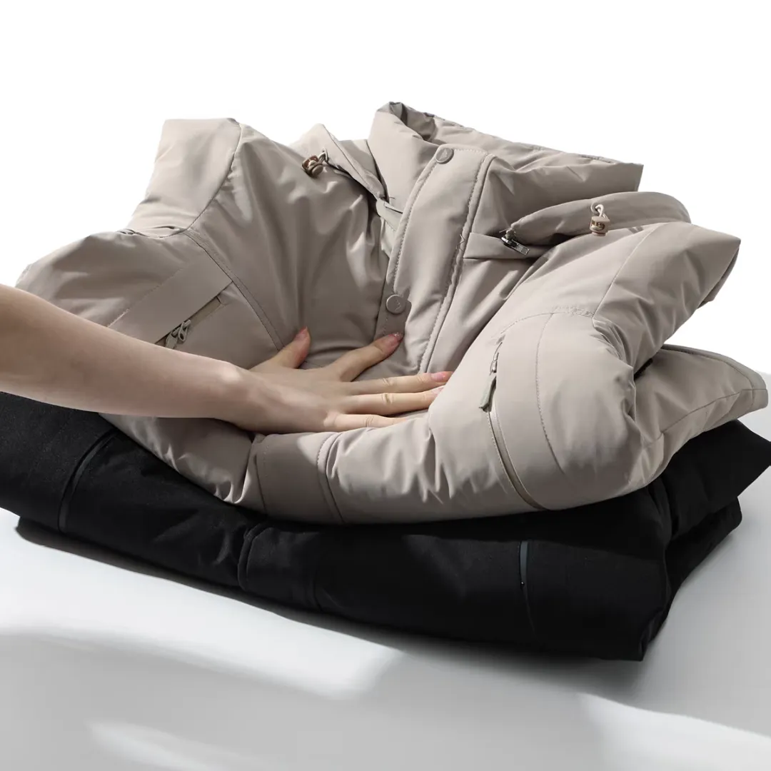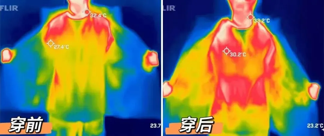 不仅如此,内里肩膀处直接拼接远红外陶瓷印花石墨烯材料,能够反射人体散发的热量,将热能循环再利用。就像在你的皮肤周围构建了一个无形的保温力场,外界寒冷无法侵入,体内温暖无法逃逸。这是一种动态的、持续的温暖,告别了传统保暖材料的被动防御。