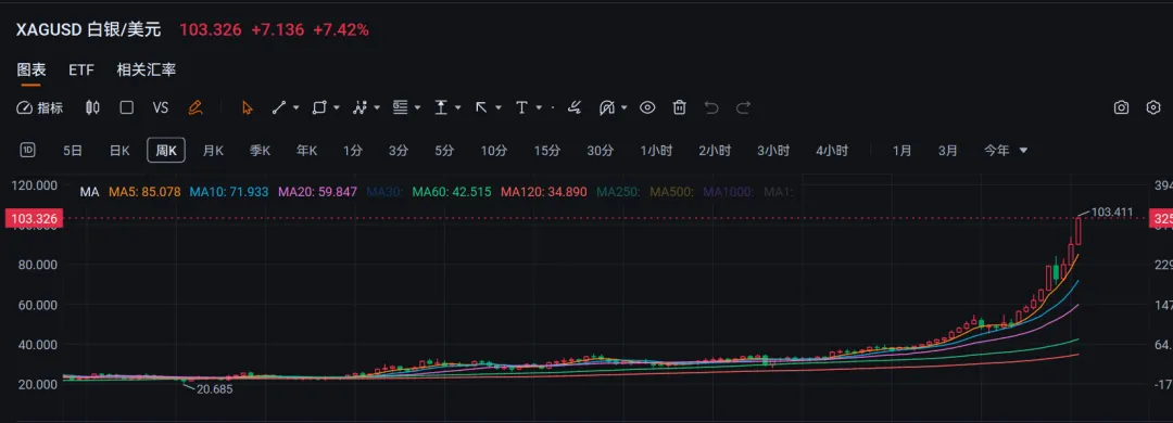 就是没什么风险,而且收益非常不错的案例。我其实知道这个套利操作应该算是比较晚的了,但最近美元信用崩塌,叠加格陵兰,委内瑞拉,伊朗局势紧张,白银价格在周五晚上已经突破了100美元大关。白银套利的场内场外溢价又快回到50%了。这意味着,买入100元,就能有50的收益。