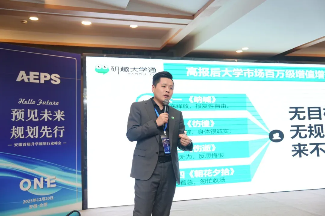 2025年12月20日,由安徽升学(生涯)规划行业联盟主办,保研录(安徽)、研趣大学通承办的 安徽首届升学规划行业峰会 在合肥栢景假日酒店隆重举行。