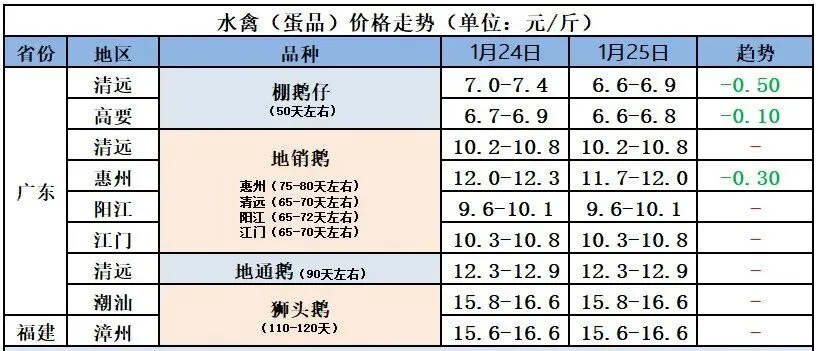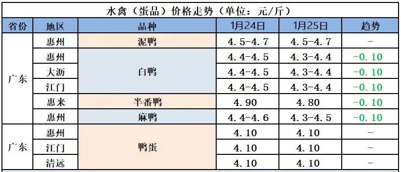 2026年1月26日全国鲜鸭蛋价格