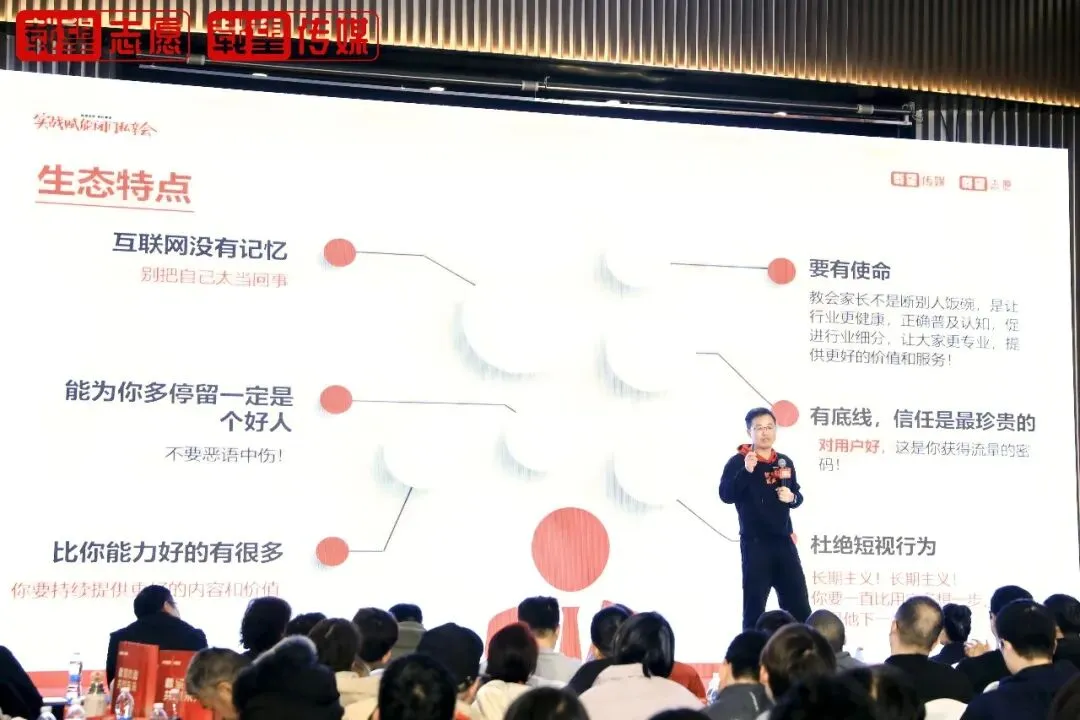 会议内容设计紧密围绕从业者最迫切的痛点展开。上午,费老师及其背后军师史亮老师以高屋建瓴的视角,分别进行了《流量的密码是价值》与《内容引擎·从懂人性到工业化》两场重磅分享。深入剖析了流量红利变迁的底层逻辑,犀利指出“有流量无利润”的核心症结在于产品结构与用户终局思维的缺失,并首次对外披露了“载望志愿生态赋能模型”。同时,载望传媒内部视为核心机密的“内容中央厨房”工作流及爆款选题库亦首度公开,为与会者提供了可复用的体系化内容生产方案。