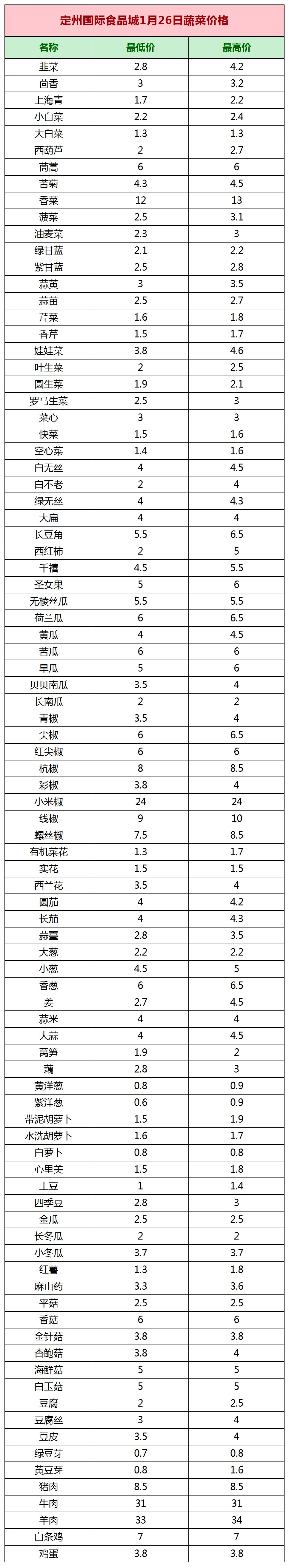 当前位置:首页>价格>定州国际食品城1月26日蔬菜价格