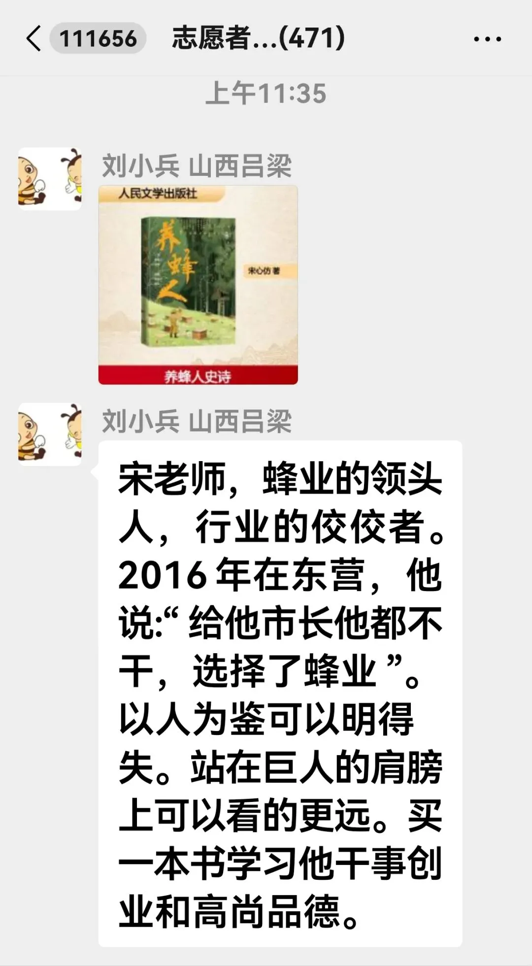 (一)蜂业志愿者、山西吕梁刘小兵: