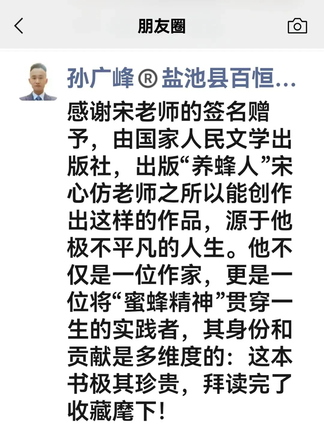 宋老师,蜂业的领头人,行业的佼佼者。2016年在东营,他说:“给他市长他都不干,选择了蜂业”。以人为鉴可以明得失。站在巨人的肩膀上可以看的更远。买一本书学习他干事创业和高尚品德。