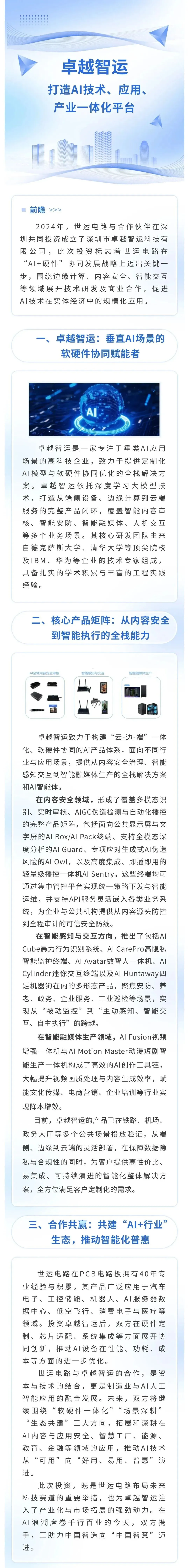 >【企业动态】共建"AI+行业"生态, 世运电路与这家企业达成合作