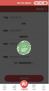 作为铸造行业金属原材料价格信息服务平台——铸材行情,每天不仅发布全国各地最新的行情价格,提供3年、5年、10年历史行情数据分析,当下,我们的AI预测未来行情新功能重磅上线!