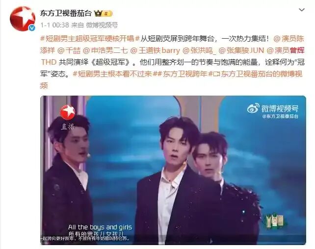 网络微短剧公众号主编骆雨竹(微信ID:wlwdj_2020)从每日经济新闻了解到,2025-2026 年的短剧行业,早已不是 “小打小闹” 的边缘赛道。跨年晚会成了短剧演员的秀场:初代 “短剧女王” 徐艺真登上央视跨年舞台,柯淳在浙江卫视表演唱跳,东方卫视直接组起 7 人短剧男团,和肖战、靳东等长剧大咖同台竞技。曾经被视为 “快餐娱乐” 的短剧,如今正式 “上桌吃饭”,成为主流视野里的香饽饽。