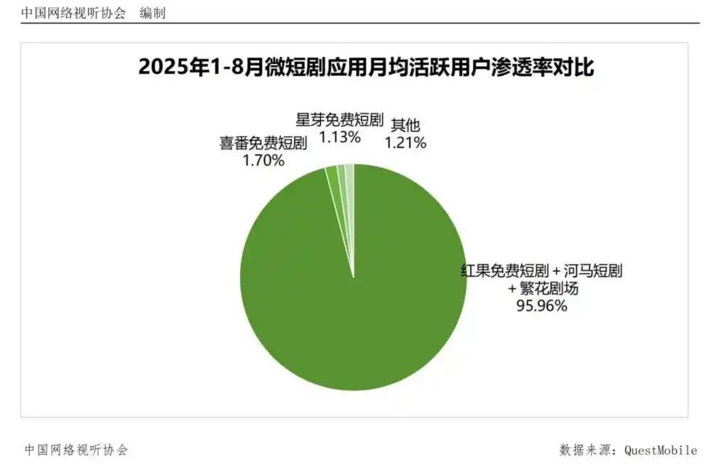 平台格局被红果彻底改写。作为免费短剧的领头羊,红果 2025 年三季度月用户使用总时长均值达 52.37 亿小时,是腾讯视频的两倍多,月活用户从第六冲到第四,和河马剧场、繁花剧场一起抢占超 95% 的用户渗透率。这让长视频平台坐不住了:爱奇艺吐槽红果协议 “排他”,腾讯感慨短剧冲击长内容,优酷直接成立微短剧中心,阿里、百度也纷纷下场布局,赛道竞争白热化。