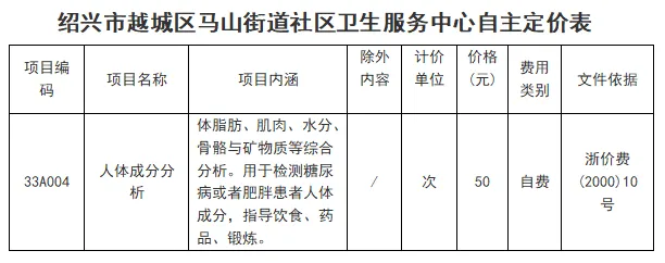 价格公示 | 马山街道社区卫生服务中心自主收费项目价格公示