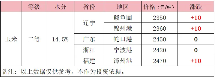 全国玉米、豆粕价格最新参考表